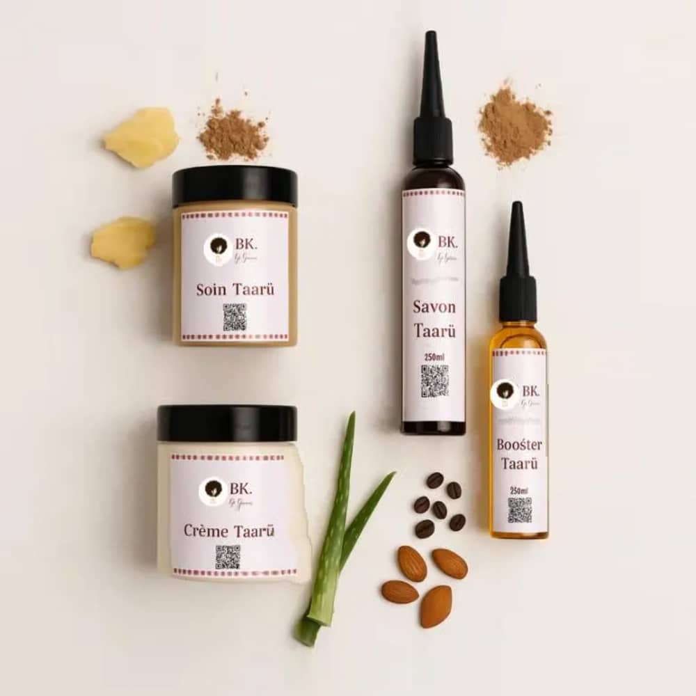 La gamme Taarü Boost est Composée du Soin, du Shampoing, de la Crème et l’Huile Booster Pousse.